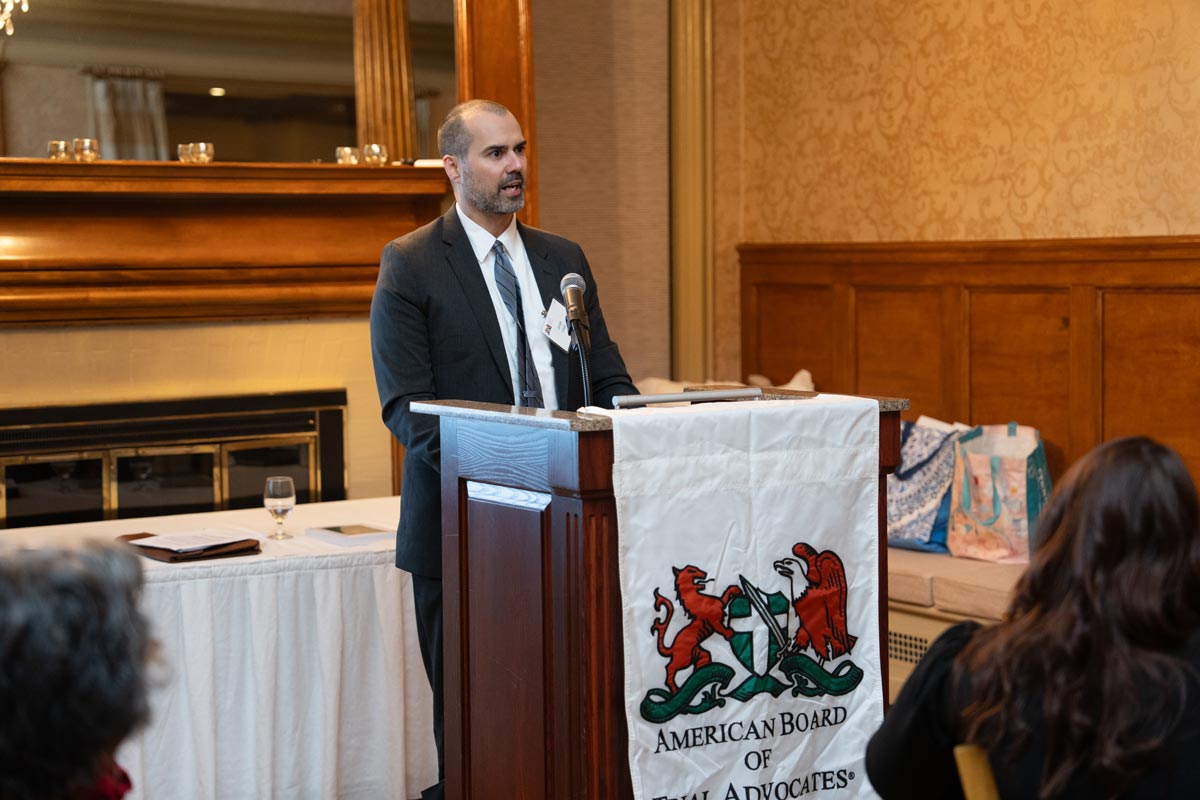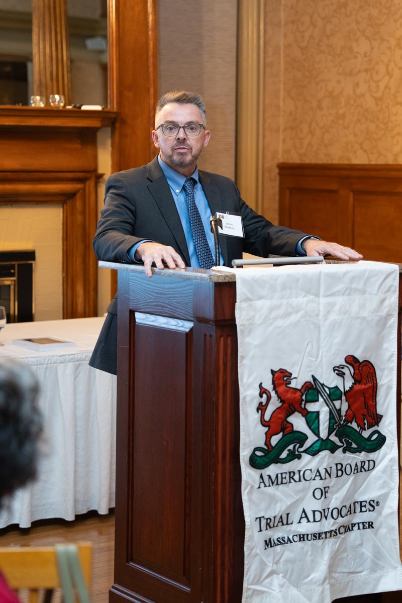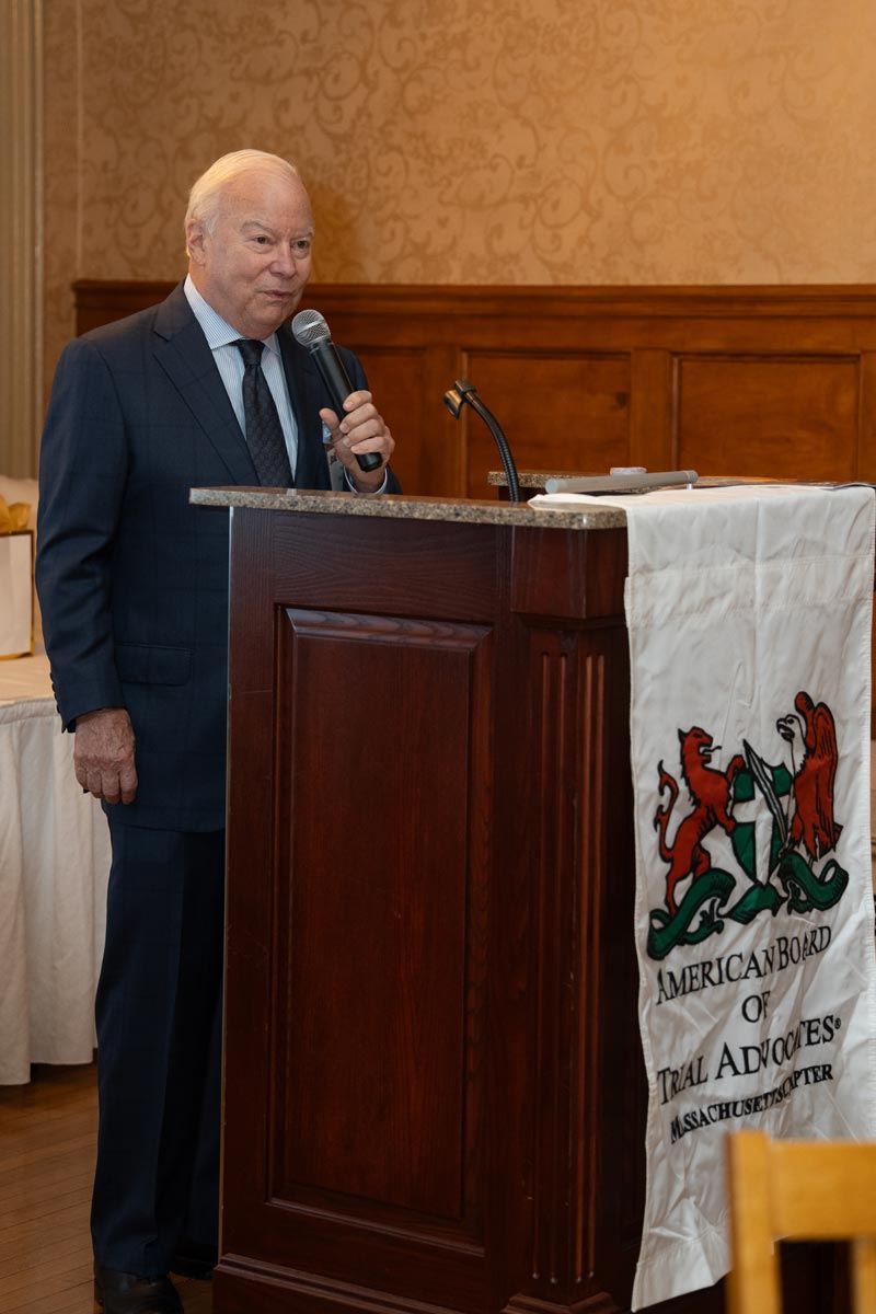 On October 8, 2025, the Massachusetts Chapter of the American Board of Trial Advocates hosted the Fall Awards Dinner in conjunction with the Worcester County Bar Association at the Worcester Country Club. Peter McGlynn, President of MassABOTA, welcomed everyone who gathered. Click here to read his speech which addressed the importance of preserving the 7th Amendment.