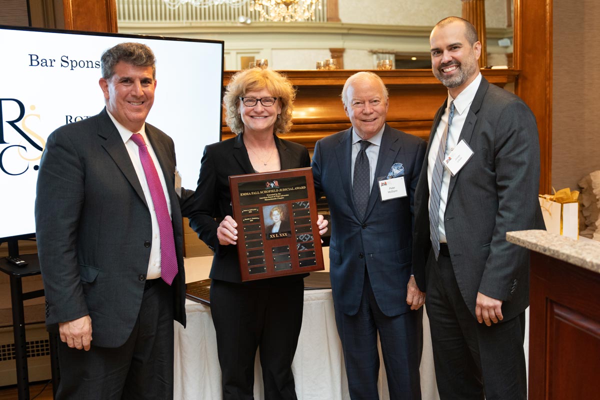 At this event, MassABOTA honored District Court Judge Jennifer L. Ginsburg with the chapter’s Emma Fall Schofield Judicial Award and attorney James C. Bradbury with The Robert Morris, Sr. Award for Courage in Litigation.